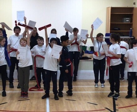 Today they had their grading and received a red belt and certificate. Also a special mention to Ben and Hughie who received red/black belt for working extra hard and showing excellent effort and commitment over the past 7 weeks.
